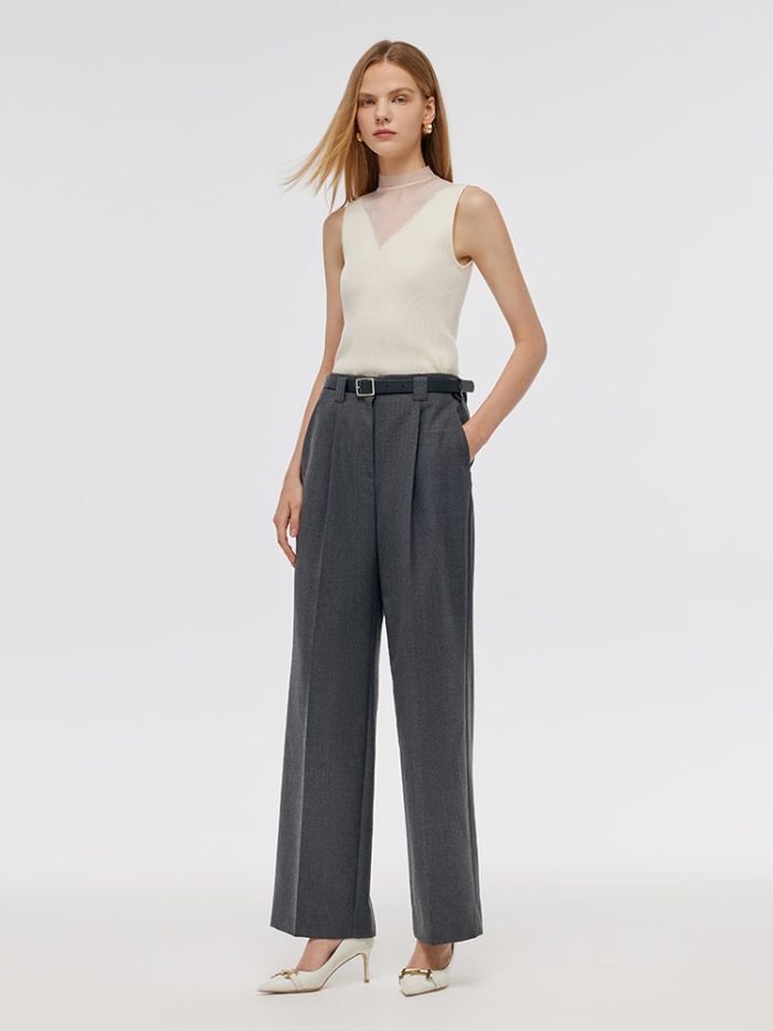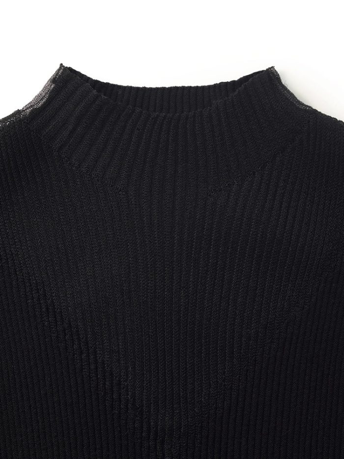 This sleeveless knit top offers a unique combination of elegance and comfort, featuring a soft finish that ensures comfort all day long. The V-shaped sheer detailing at the neckline adds a subtle touch of allure. Perfect for layering or wearing alone, this top pairs beautifully with high-waisted trousers or skirts for a refined, modern ensemble.
